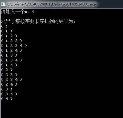 cout << "求出子集按字典顺序排列的结果为:" << endl;