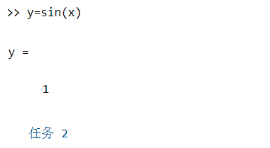 任务(2):使用 sin 函数计算 x 的正弦值。将结果赋给一个名为 y 的变量。