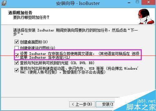 5、在“选择附加任务”的时候,图中打勾的都勾一下,其中红框内的选项用户不用管,勾选不勾选都是一样的,安装完成后免不了需要设置语言,后面会讲到;