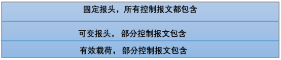 MQTT 协议通过交换预定义的 MQTT 控制报文来通信。 这一节描述这些报文的格式。MQTT 控制报文由三部分组成,如下图: