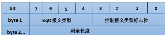 | Byte 1 | MQTT报文类型(3) | dup | Qos等级 | RETAIN | ||||