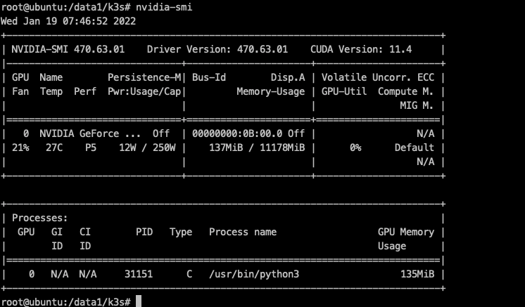 nvidia.com/gpu: 1 # 请求1个vGPUs 默认一张卡只能拆为2个,如需要修改需要修改ds中device-split-count参数,device-split-count: 整数类型,预设值是2。NVIDIA装置的分割数。对于一个总共包含N张NVIDIA GPU的Kubernetes集群,如果我们将device-split-count参数配置为K,这个Kubernetes集群将有K * N个可分配的vGPU资源。注意,我们不建议将NVIDIA 1080 ti/NVIDIA 2080 ti device-split-count参数配置超过5,将NVIDIA T4配置超过7,将NVIDIA A100配置超过15。