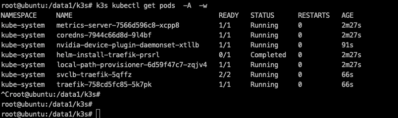 batteries-included功能,例如:本地存储提供程序,服务负载均衡器,Helm controller 和 Traefik Ingress controller。 -