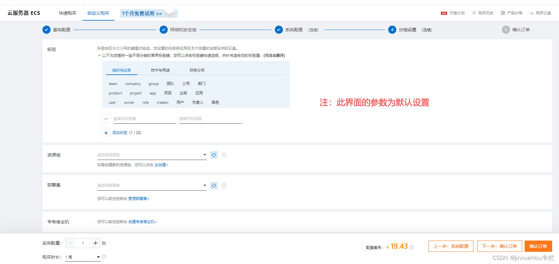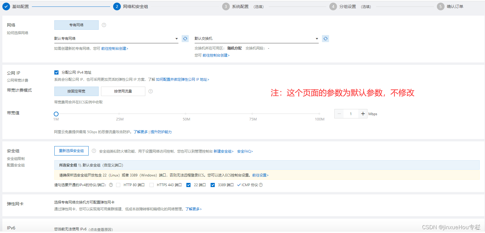 (2)“网络和安全组”界面参数设置