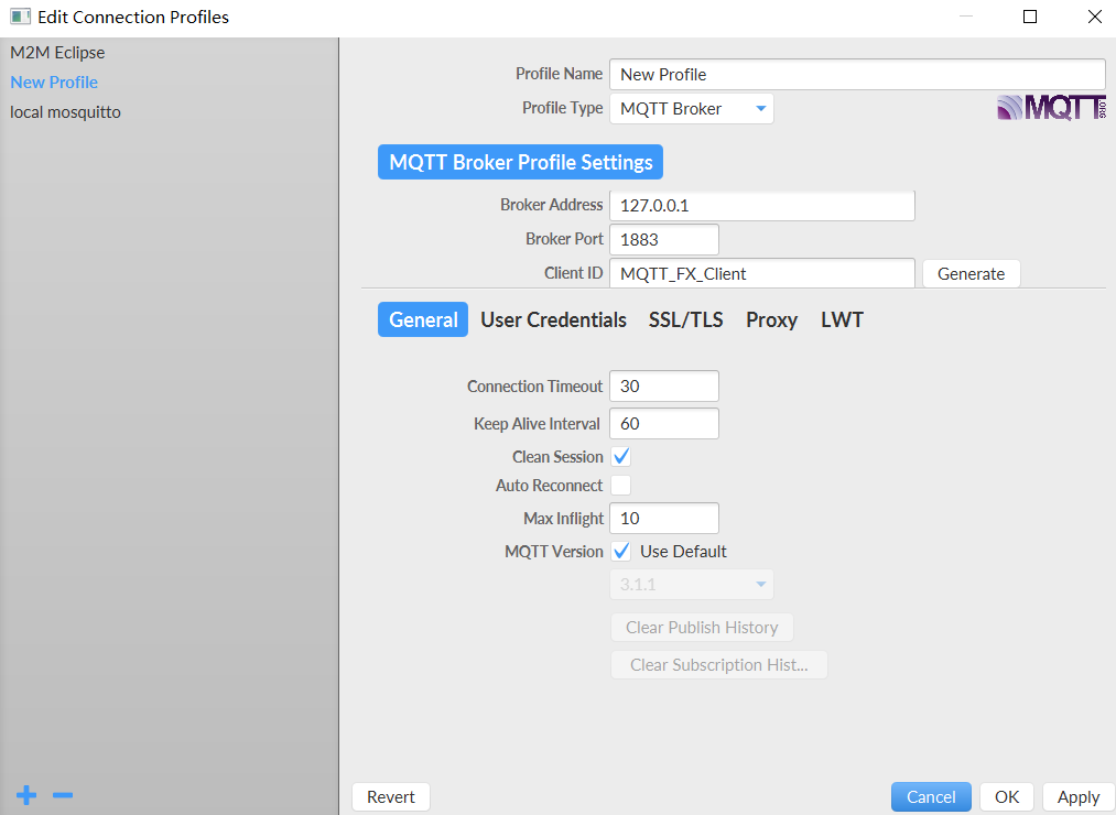 设置地址为127.0.0.1,因为开启的MQTT服务在本地开启的