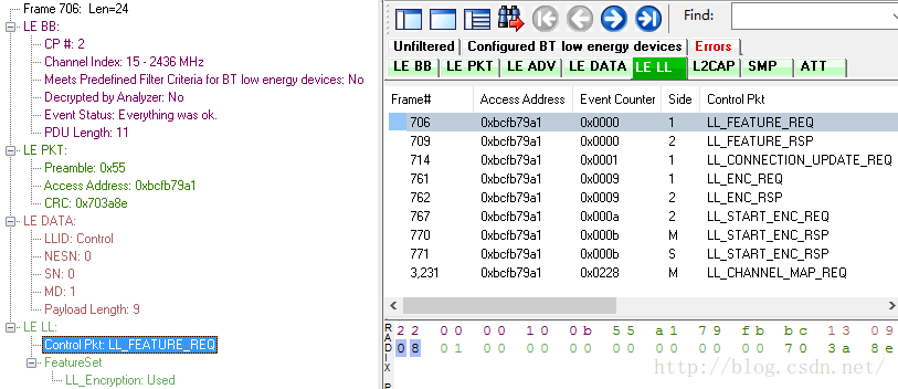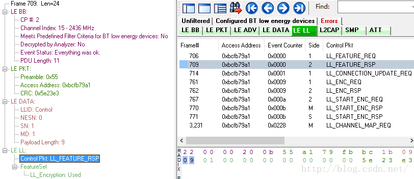 2.当收到带有不认识或不支持的opcode的链路层控制包时,回应LL_UNKNOWN_RSP包