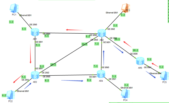 最后我只修改了AR3的路由,让其数据去的时候也从上面走,这样保持来去路径一样(当然修改路由路径看你自己,也可以来去从中间11.0网段走):
