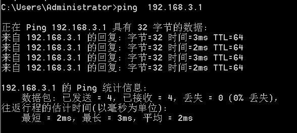 这是我们关心一下reply的ttl,因为直连路由的ttl值64,128.255这三种的一种,走默认路由的经过一个路由器值减一,由此可以判断目的方到源主机经过的路由节点数。如下图,判断目的ip和源ip是同一广播域的,没有经过路由器。ping结果里有统计reply的最小时间,最大时间和平均时间,根据这些判断是否经过节点拥塞。一般局域网网内,不超过1ms,广域网ip不超过100ms,若出现几百甚至秒以上的回包,说明节点或者目标设备网络拥塞验证或者有突发包影响。