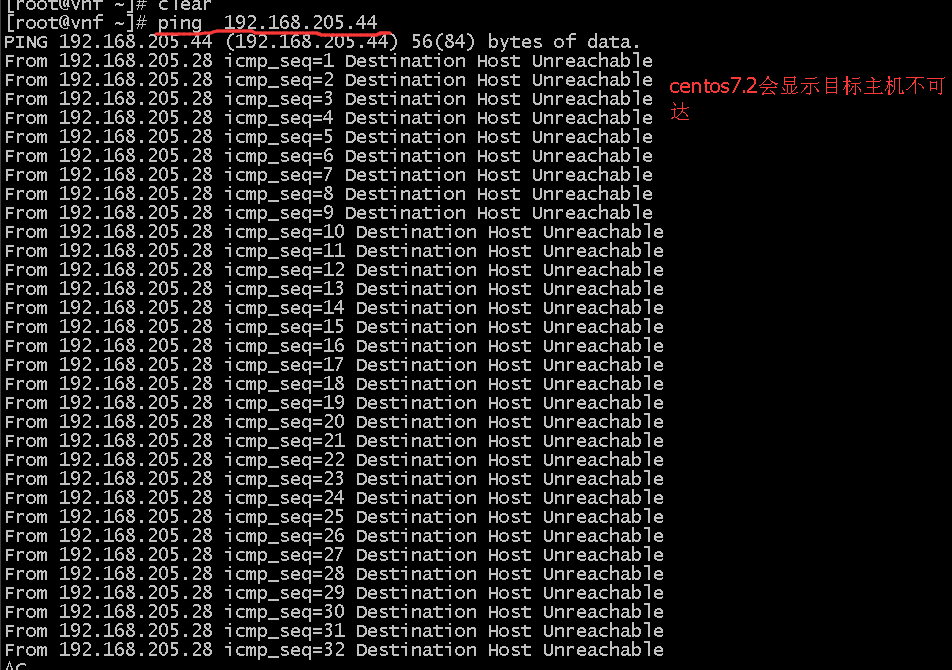 发现centos7.2会显示自身ip地址显示目标主机不可达,arp消息一秒发出一个,但发现有的centos6.5是不显示任何提示的。