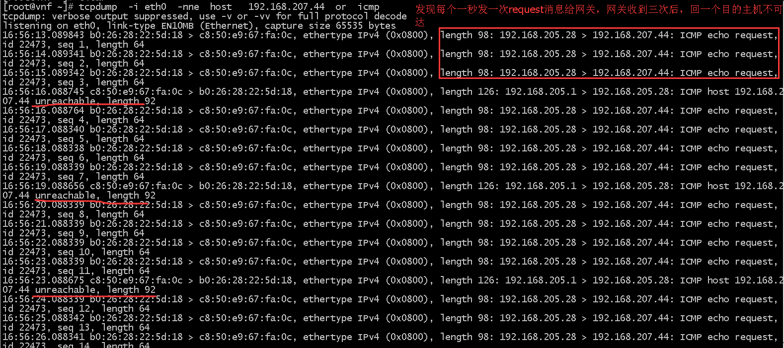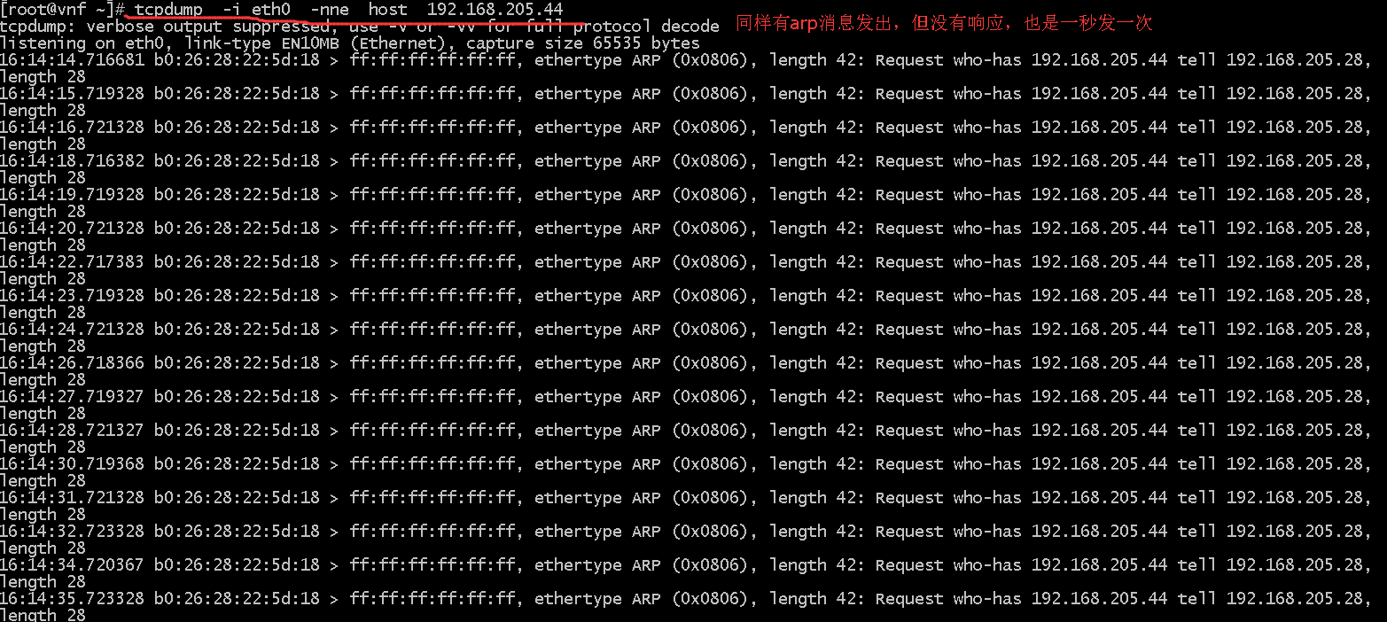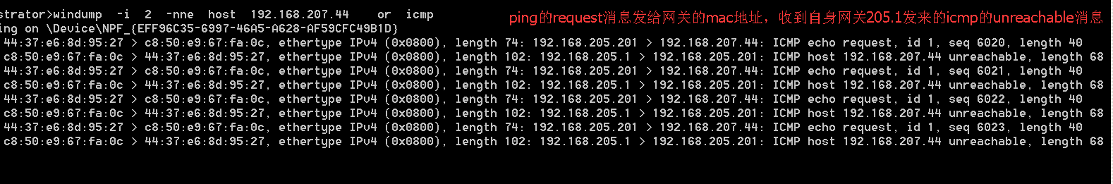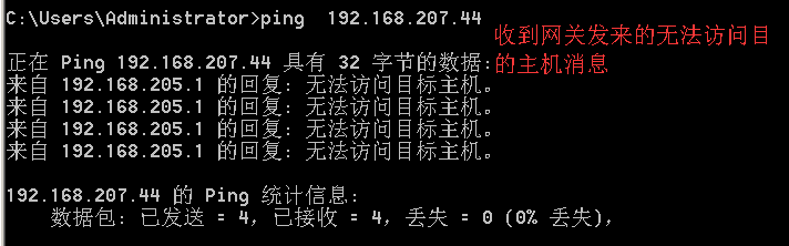 ping一下同网段不存在的一个ip192.168.205.44看看结果?
