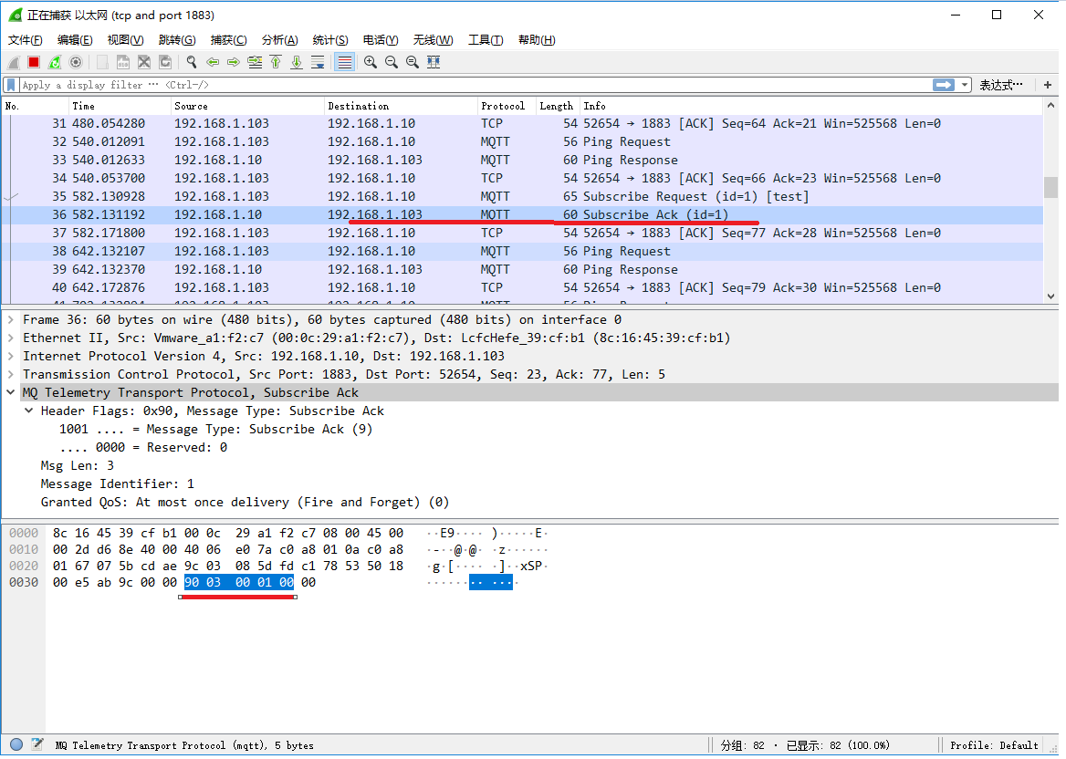 继续,看看服务器返回给我们的Subscribe ack数据包: