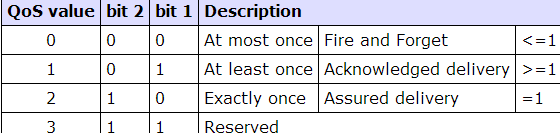 两位表示,和PUBLISH消息固定头部的QoS level含义一样。这里先掠过,到PUBLISH消息再回过头来看看,会更明白些。