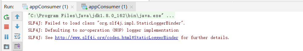 7.那么我启动了两个相同目标队列的消费者呢?重新测试一下看看,为方便看清结果,重启一下服务。然后运行两遍消费者,idea控制台如下图:有两个消费者,且都没有收到消息。