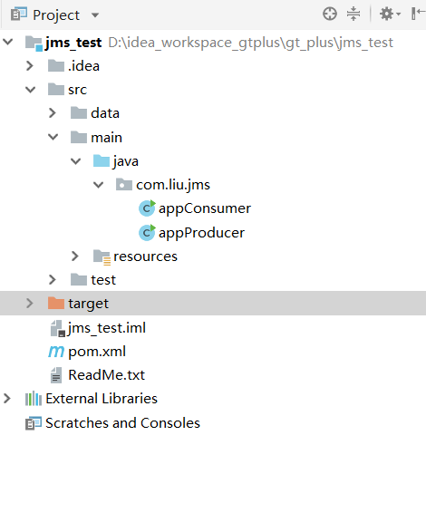 2.自己新创建两个java文件,appConsumer消费者类和appProducer生产者类,项目结构如下图: