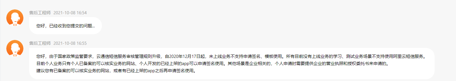 2020/12 阿里的短信功能就不能用于测试系统和学习场景了。