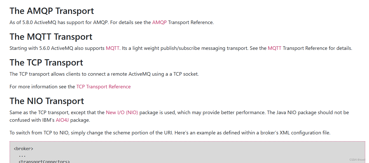 上网站查看传输协议:http://activemq.apache.org/configuring-version-5-transports.html