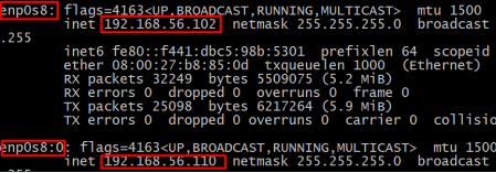 ifconfig命令查看虚拟IP 192.168.56.110是否存在: