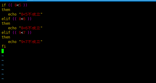 elif (( 9<10 )) #由于上面的判断条件成立了,所以不继续往后判断了。