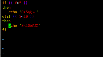 elif (( 8<10 )) #因为上面有一个条件成立了,所有不会进行后续的代码判断了