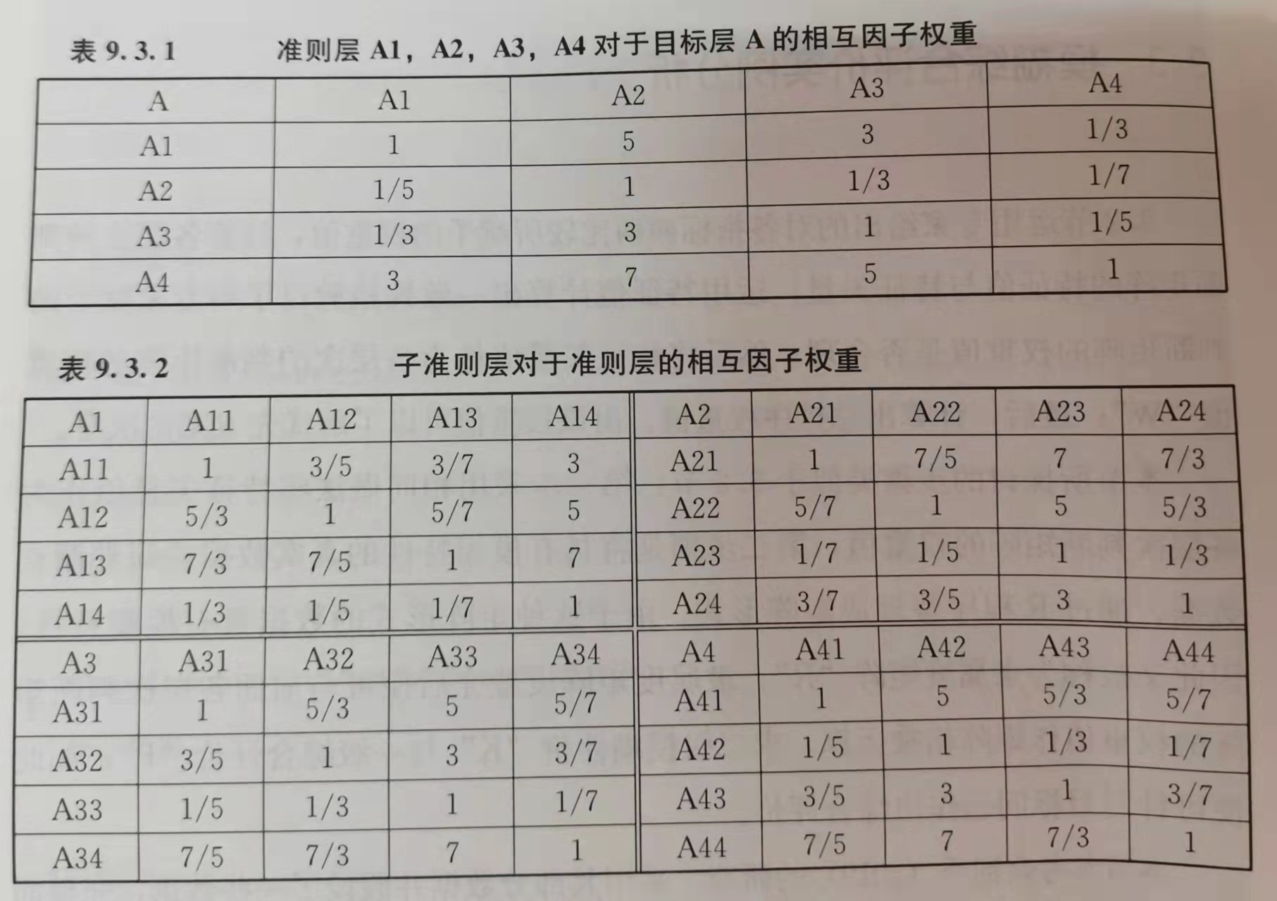 #求出各层次判断矩阵的权重值