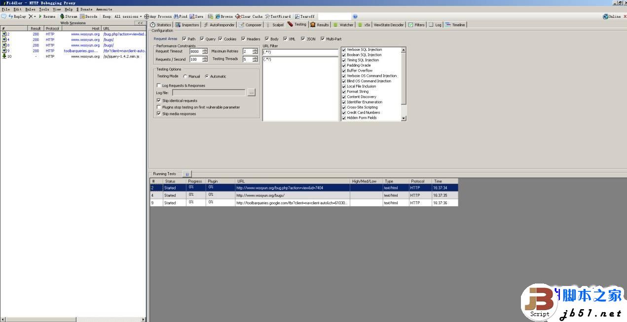 看来比fiddler复杂许多是吗?呵呵。其实这里有许多选项是可调的。这个自己研究下就可以了。设置好相关的参数后,测试起来也是相对要方便很多的。