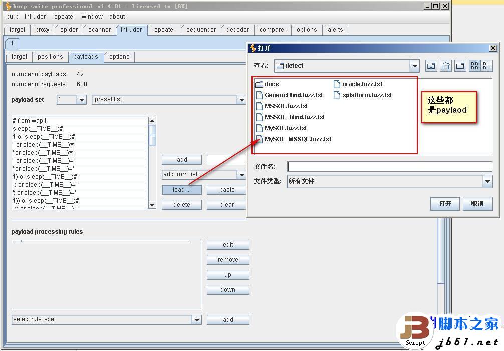 在burpsuite里加载fuzzdb的数据进行进行测试