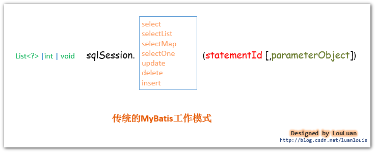 这是传统的传递Statement Id 和查询参数给SqlSession对象,使用SqlSession对象完成和数据库的交互;MyBatis 提供了非常方便和简单的API,供用户实现对数据库的增删改查数据操作,以及对数据库连接信息和MyBatis 自身配置信息的维护操作。