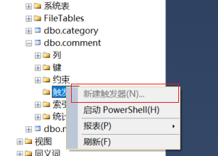 今天敲牛腩需要建立触发器,但是我的sql sever2014中新建触发器是灰色的,不能新建,百度了两种方法,可以在新建查询中写sql语句,另一种方式是使用Navicat Premium写简单的语句去建立。