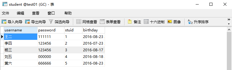 注意:new表示student中新插入的值。