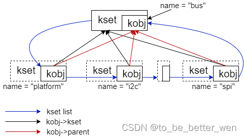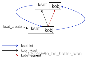 3. kset字面意思是kobject的组合,list用于将一组kobject形成链表,便于管理。