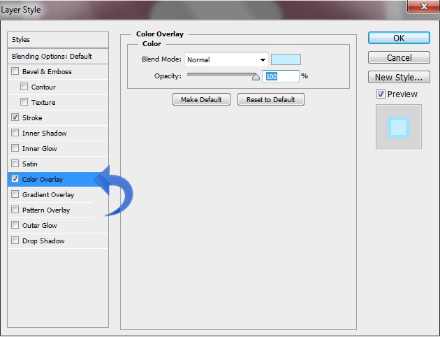 现在,点击图层样式添加描边、颜色叠加和投影。