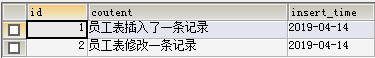 1 -- 创建日志表 2 CREATE TABLE test_log 3 ( 4 id INT PRIMARY KEY AUTO_INCREMENT, 5 coutent VARCHAR(64), 6 insert_time DATE 7 );