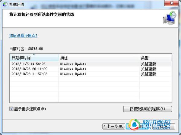 通过打开系统保护选项,我们就可以轻松的找到系统还原的功能所在,点击系统还原按钮,会继续弹出新的窗口,提示是否还原,选择下一步进入到还原点的选择。如果显示窗口中的还原点数量不能满足你的使用需求,那么可以通过打开显示更多还原点来打开更多的选择。在选定所需要还原的还原时间之后,选择下一步,只需等待10分钟左右就可以完成还原了,还是非常方便的。