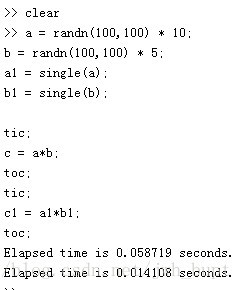 至于从double到single能否提高运算速度。从上面这句话来看,应该也不能提高速度。但是从这里得到提示,自己试了试看,确实速度提高了不少,如下所示: