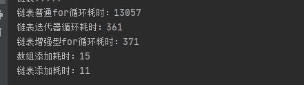 System.out.println("链表添加耗时:" + (addTime3 - addTime2));