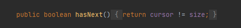 只要cursor不等于数组大小返回true,因为cursor初始值为0,所以正常情况下该值不会大于size