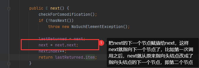 重复的地方就不讲述了,直接从next()方法分析: