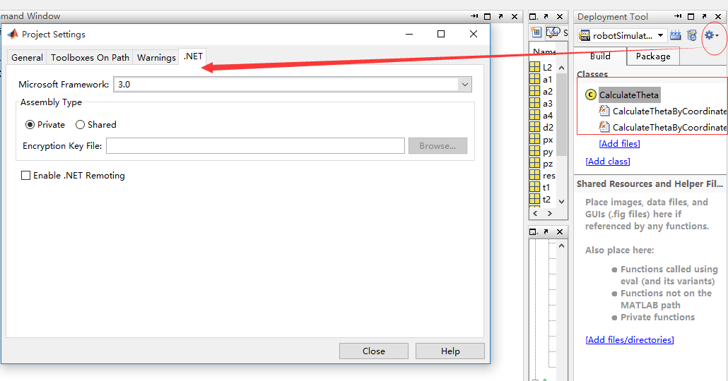 利用m文件生成dll再由C#调用。优点是可移植型较好,目标机不需要安装Matlab,只需要安装MCRinstaller.exe及dll的注册,缺点是配置较为复杂,受各种版本的影响。此方法编译时候选择的.NET版本必须与VS中建立的工程的.NET版本一致,并且64位matlab编译的dll文件必须在VS中选择64位编译器.