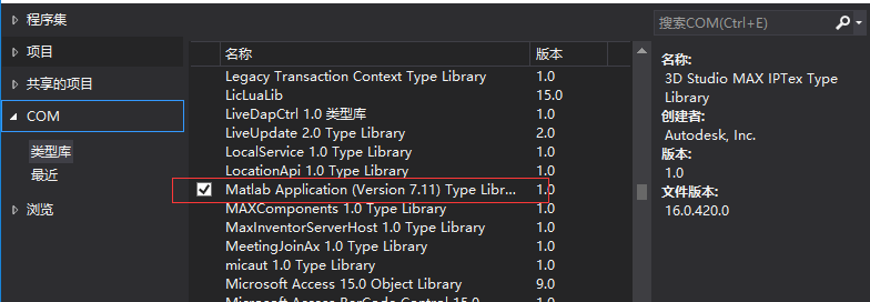 添加MWArray.dll的引用,并添加COM组件Matlab Application Type Library,如下图: