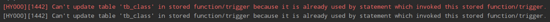 如果我们在写触发器的时候,将添加学生、删除学生和删除班级的触发器都写在一个查询模板中。你会发现当你在删除班级的时候,会报错。显示如下信息: