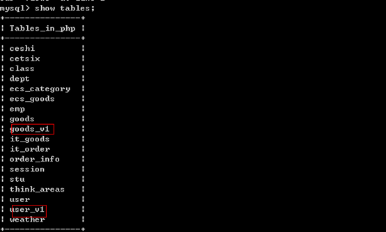 语法: create view goods_v1 as select id,goods_name,shop_price from goods;