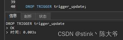 2、删除----更新触发器,执行语句: DROP TRIGGER trigger_update;