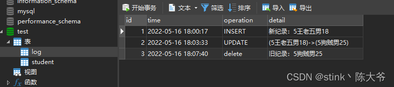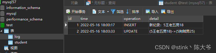 以上就是有魅力云朵最近收集整理的关于创建mysql触发器一、提出任务 (五)查看触发器 (六)测试触发器 (七)删除触发器的全部内容,更多相关创建mysql触发器一、提出任务 (五)查看触发器 (六)测试触发器 (七)删除触发器内容请搜索靠谱客的其他文章。