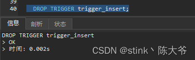 1、删除----插入触发器,执行语句: DROP TRIGGER trigger_insert;