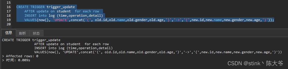 -执行命令:SHOW CREATE TRIGGER trigger_update;