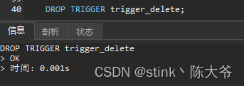3、删除----删除触发器,执行语句: DROP TRIGGER trigger_delete;