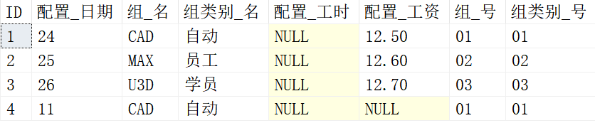 3、当出勤表中的日期被更新的时候,配置表里是否会插入了一条数据?我们先看看配置表中的数据