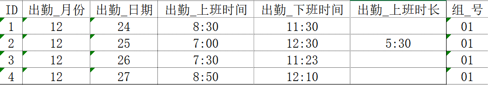 我们看到出勤_上班时长是没有数据的,下面我们开始更新