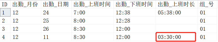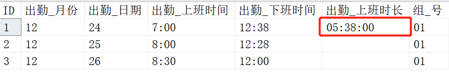 从上图可以看出,结果符合我们预期,同理更新下班时间也会对上班时长进行更新操作,这里就不演示了。