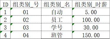 INSERT INTO 组类别(组类别_号,组类别_名,组类别_时薪)
